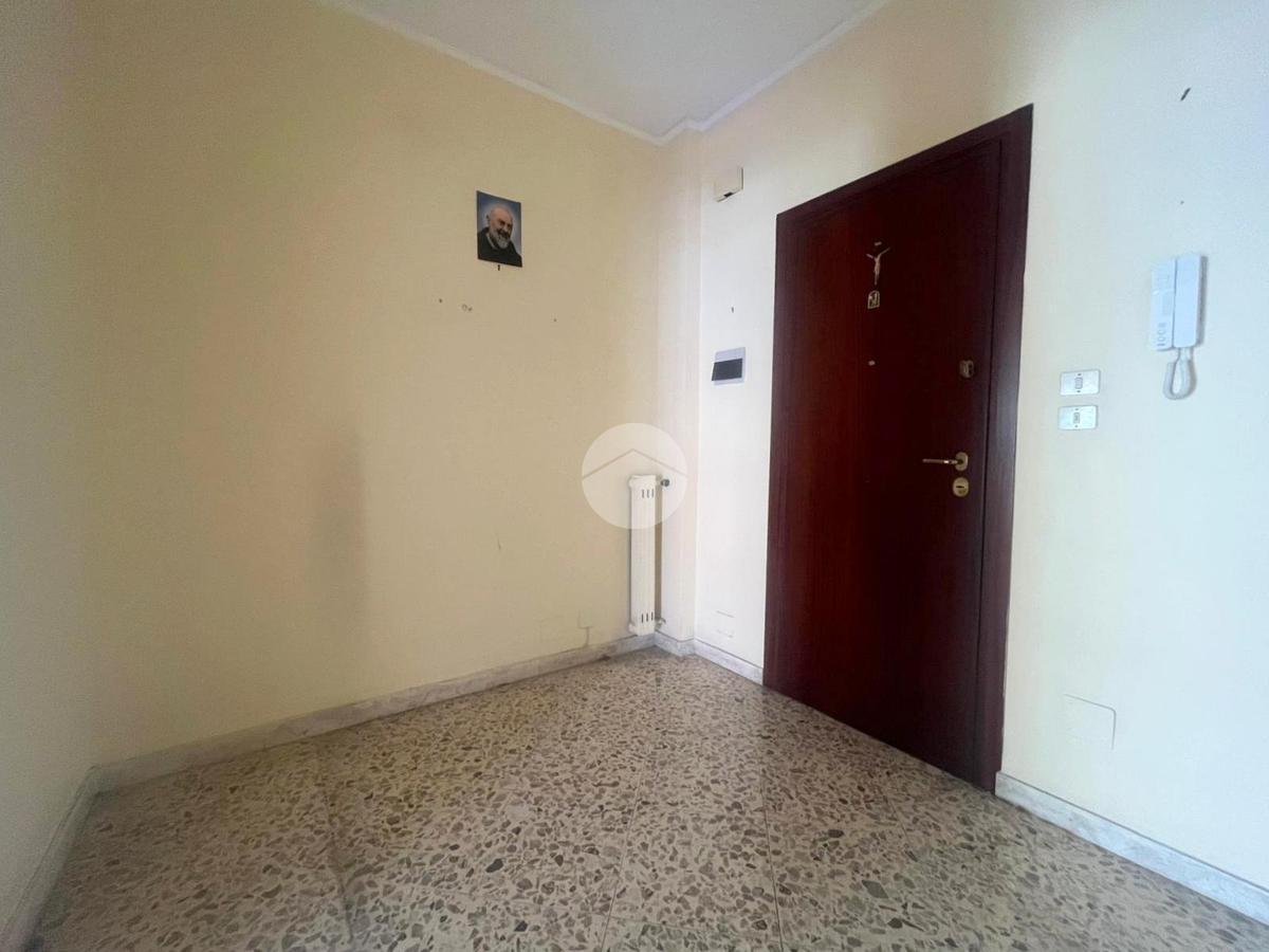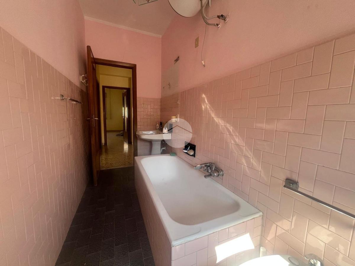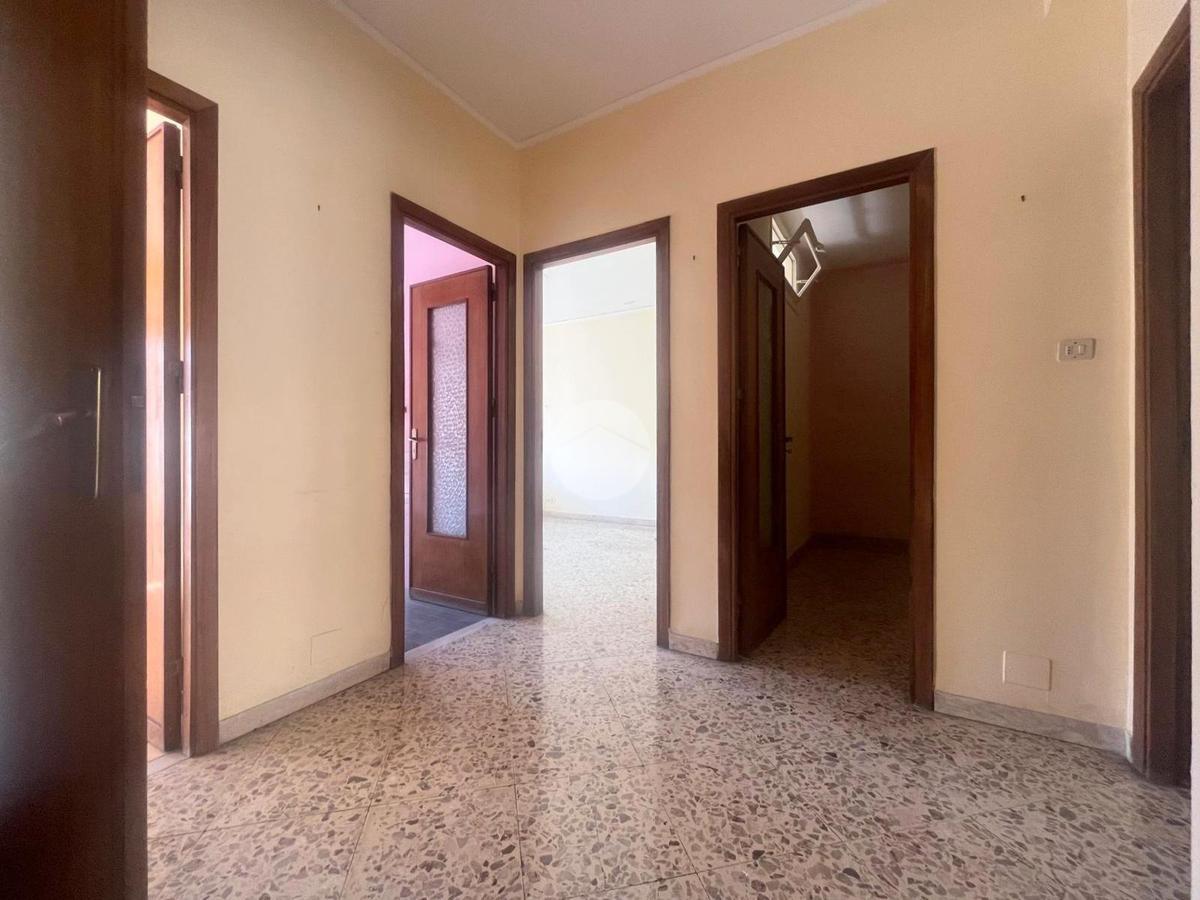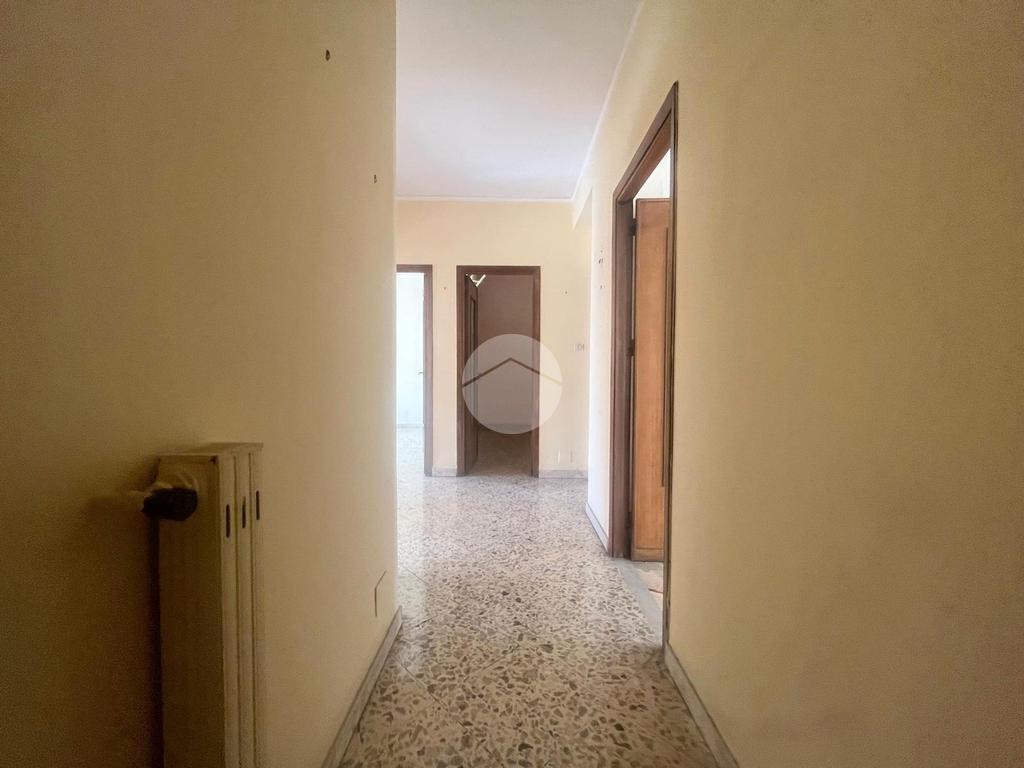Le condizioni interne richiedono una ristrutturazione completa, elemento che rende l’appartamento assimilabile a una vera e propria tela bianca, pronta a essere personalizzata secondo le proprie esigenze. Attualmente si presenta con porte in legno e vetro, infissi in alluminio e vetro e pavimentazione in scaglie di marmo e ceramica nei servizi.