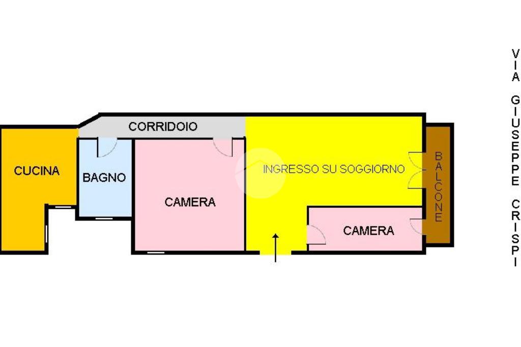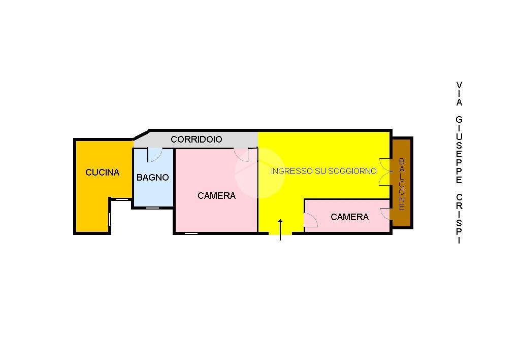 L’appartamento, di 72 mq commerciali, si presenta ben distribuito. L’ingresso si apre su un ampio soggiorno con adiacente cameretta, utilizzabile anche come studio o ripostiglio; entrambi gli ambienti si affacciano su un balcone con esposizione su Via Giuseppe Crispi. Un corridoio conduce alla camera da letto padronale, dotata di balcone a petto sul retroprospetto, al bagno con doccia e alla cucina semi-abitabile, entrambi anch’essi con esposizione interna.