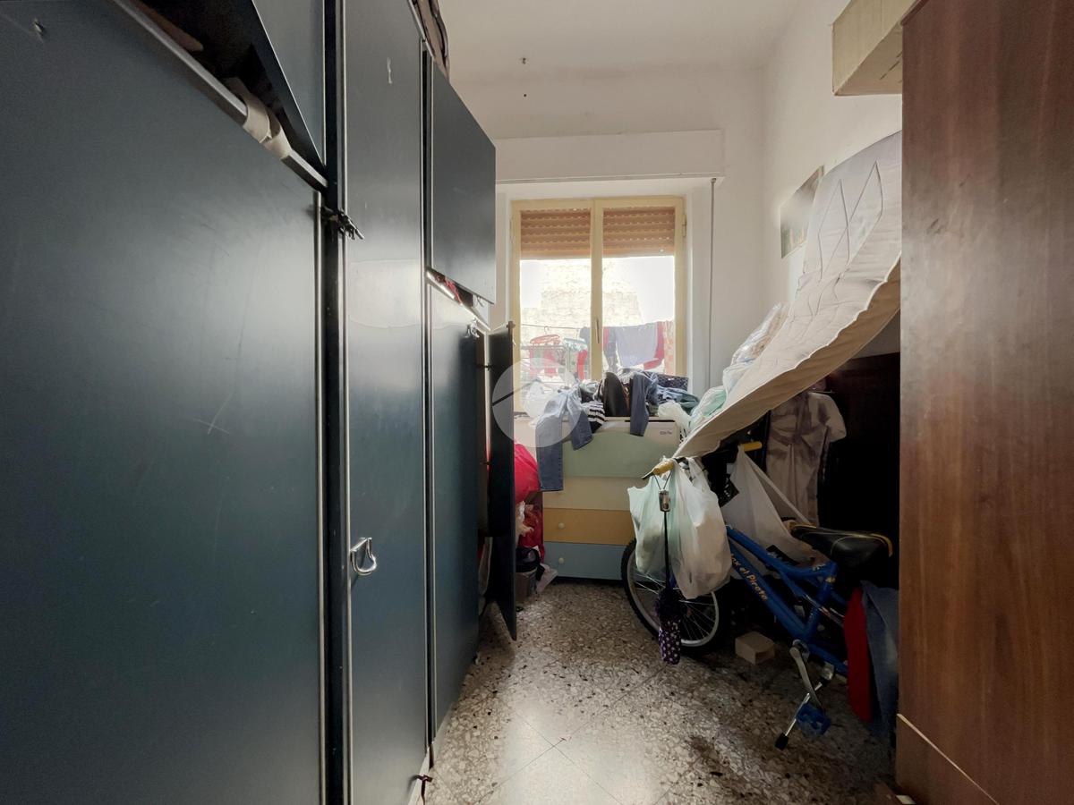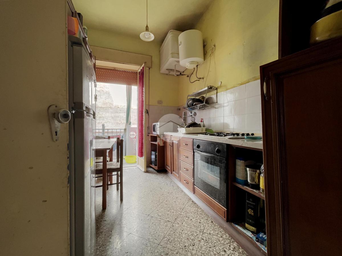 L’appartamento si presenta da ristrutturare, sia negli impianti che nelle rifiniture interne: le porte sono in legno, gli infissi in ferro e vetro, mentre la pavimentazione è in scaglie di marmo tipiche dell’epoca.
