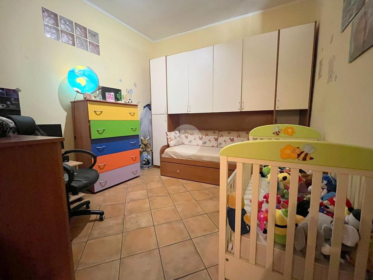 La superficie dell’appartamento è di 112 mq commerciali e l’ingresso si apre su un ampio e luminoso salone, ideale per momenti di relax o convivialità. Il balcone con affaccio sulla strada principale dona luce naturale e movimento agli ambienti. A ridosso del salone si trova la camera da letto, mentre attraverso un disimpegno si accede alla cameretta, al bagno con box doccia e alla cucina–soggiorno, affacciata sul prospetto interno e pensata come fulcro della vita domestica.